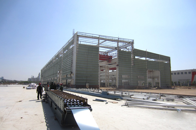 224米長x74.6米寬x31.32米高,墻體高安裝維護(hù)墻板難度大