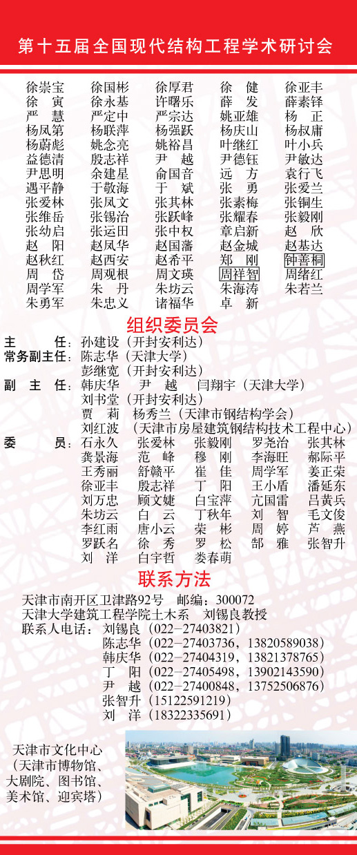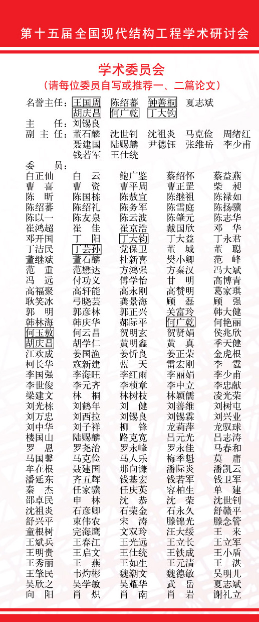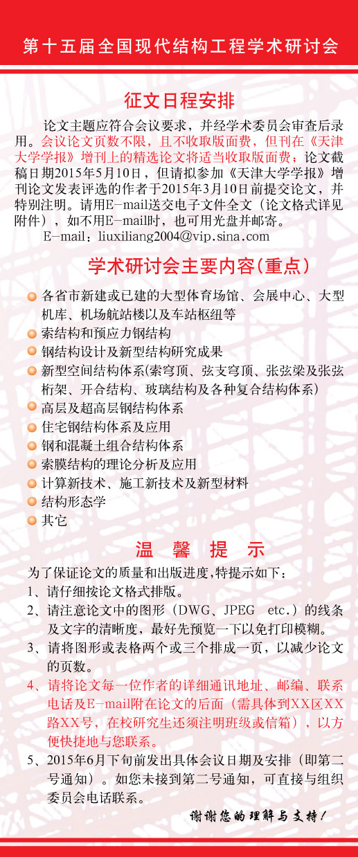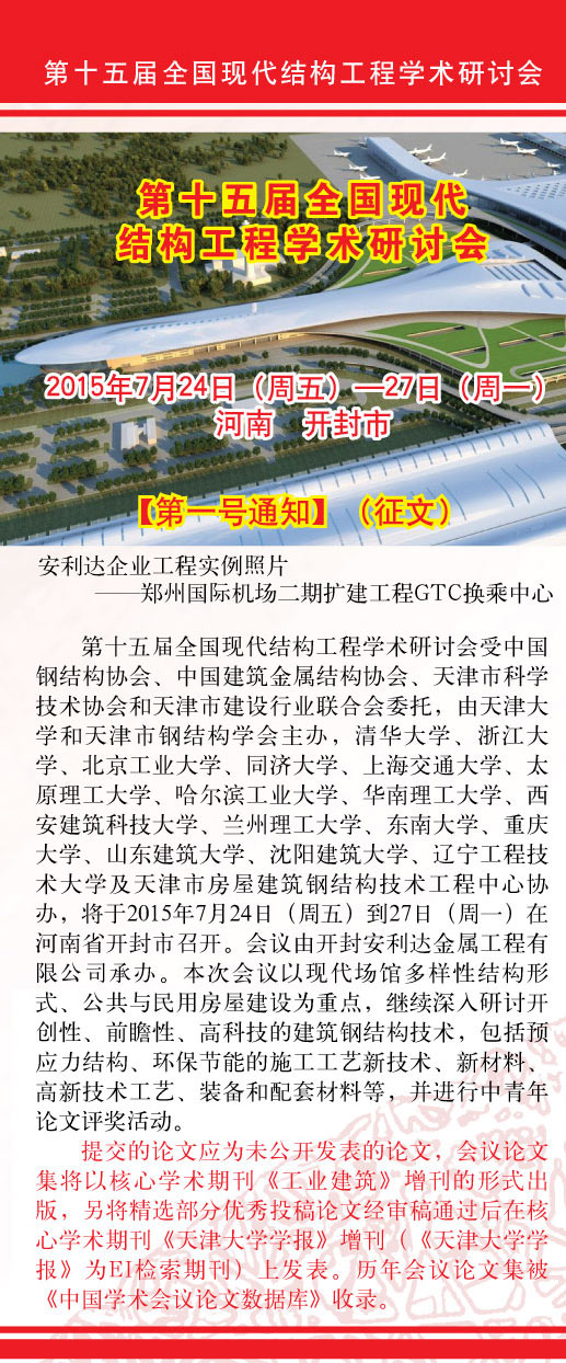 熱烈祝賀第十五屆全國(guó)現(xiàn)代結(jié)構(gòu)工程學(xué)術(shù)研討會(huì)【第一號(hào)通知】(征文)順利下發(fā) |