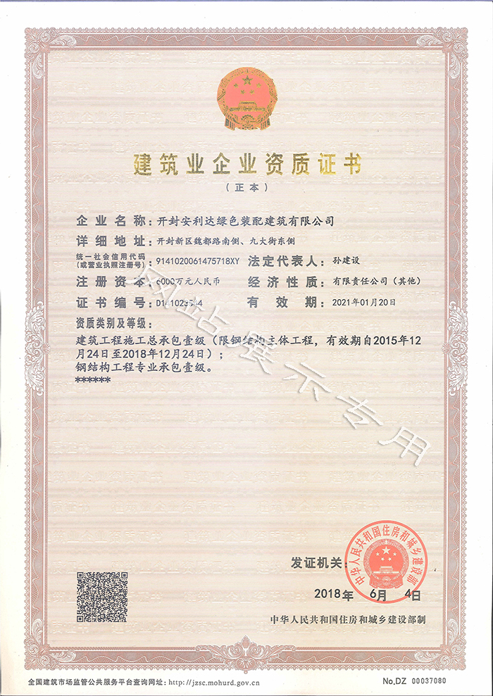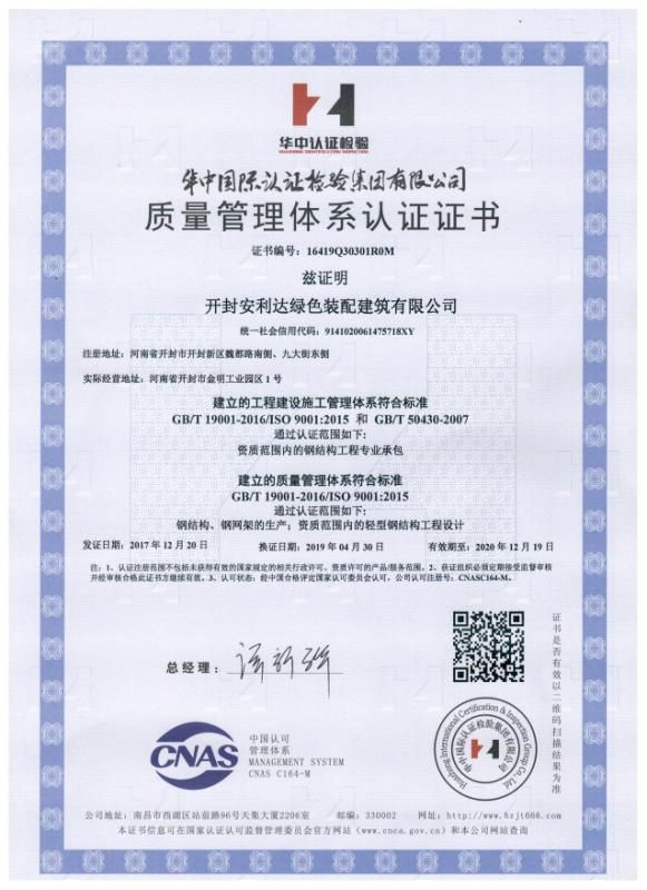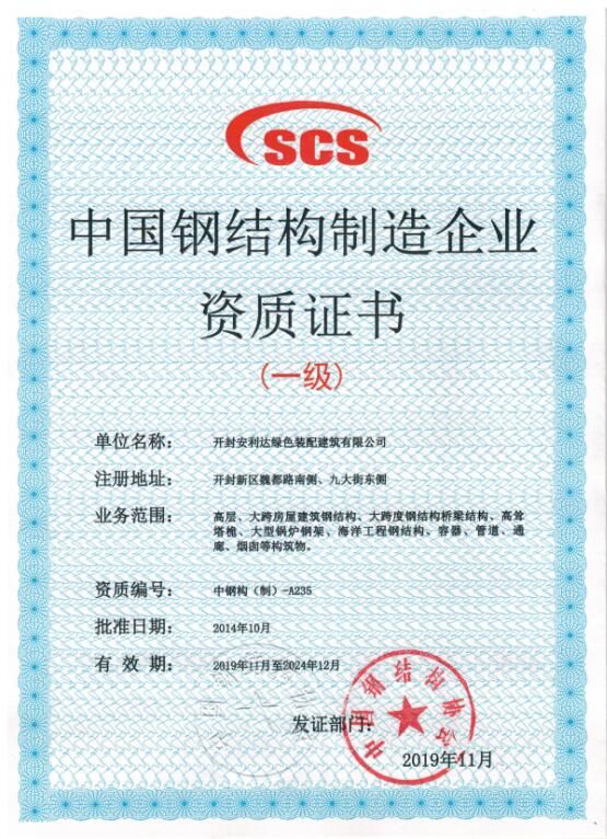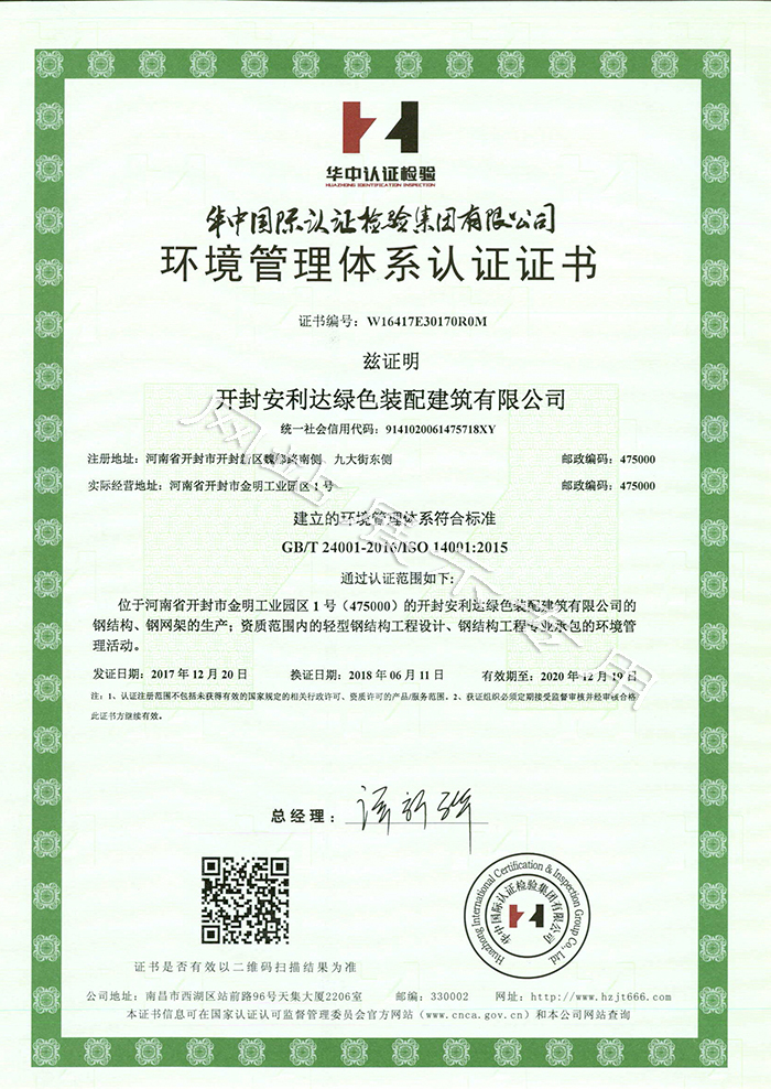 | 壹級(jí)施工總承包資質(zhì)證書 | 鋼結(jié)構(gòu)加工資質(zhì) | 環(huán)境管理體系認(rèn)證證書 |