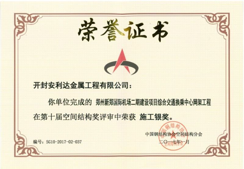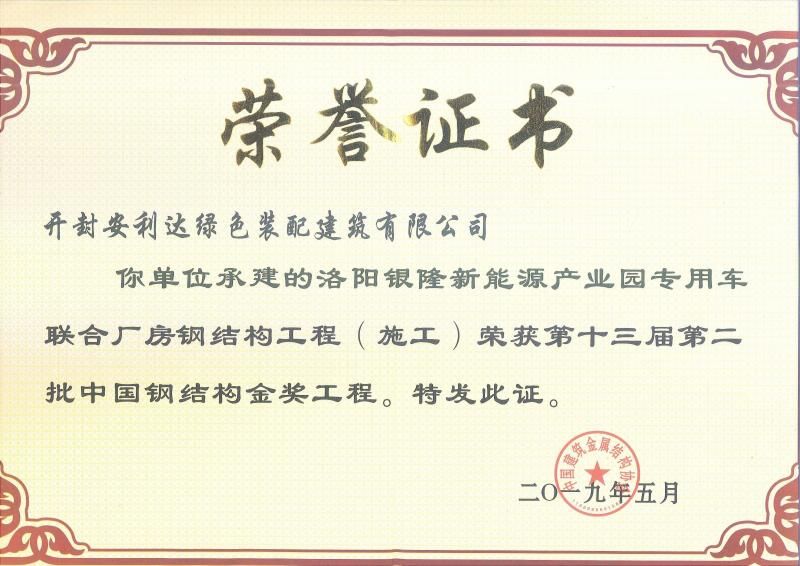 洛陽銀隆鋼結(jié)構(gòu)金獎(jiǎng) |