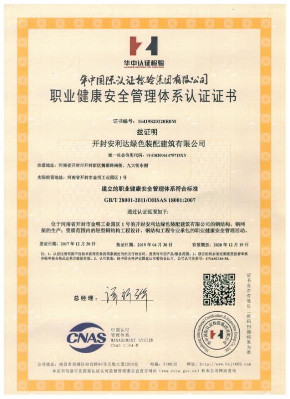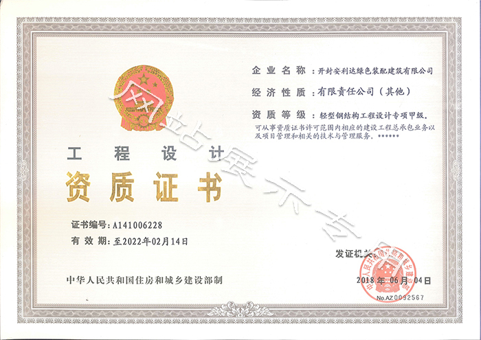 | 職業(yè)健康安全管理體系認(rèn)證證書 | 設(shè)計(jì)甲級(jí)證書 |