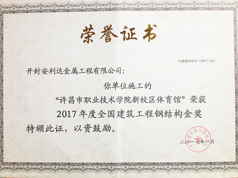 許昌職業(yè)技術(shù)學(xué)院鋼結(jié)構(gòu)金獎(jiǎng) |