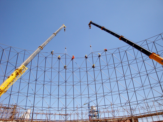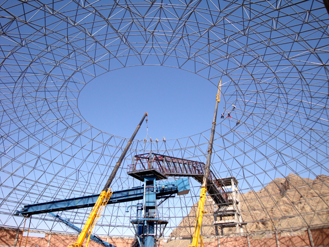 工程特點(diǎn):球冠直徑D=86米,球冠高 h=22.25米