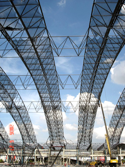 459米長x132米寬x30米高,該工程跨度132米,安裝難度大